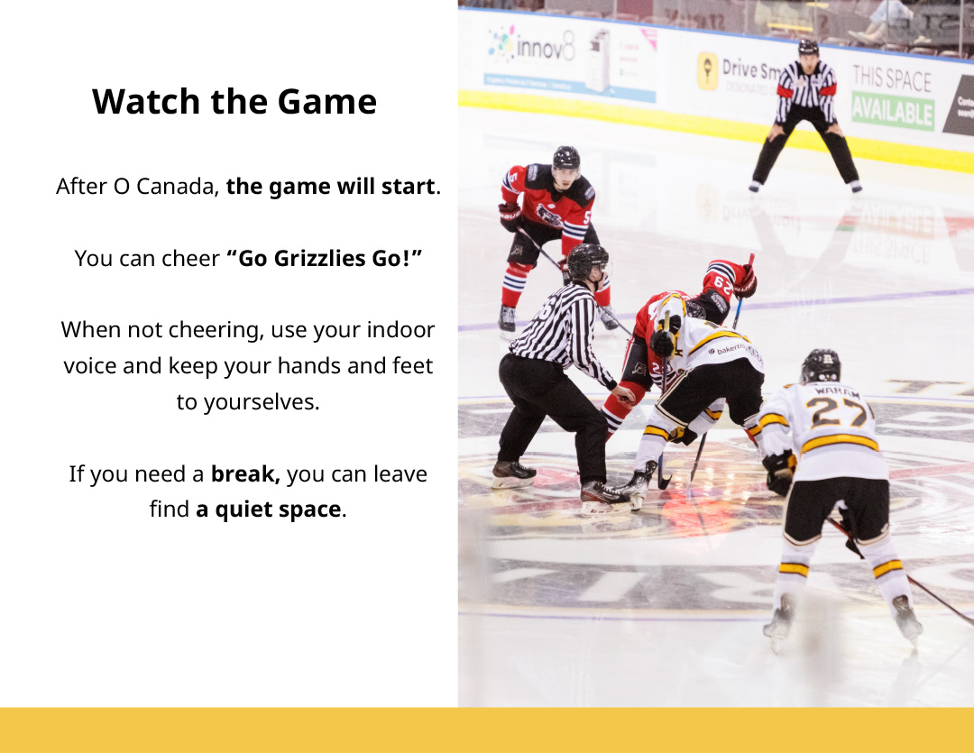 The Grizzlies are pleased to have partnered with the Canucks Autism Network (CAN) to create a visual walkthrough of the Q Centre and the Grizzlies experience. To view the book you can either interact with the slider below by clicking the arrows, or download the book by clicking the link below the slider.