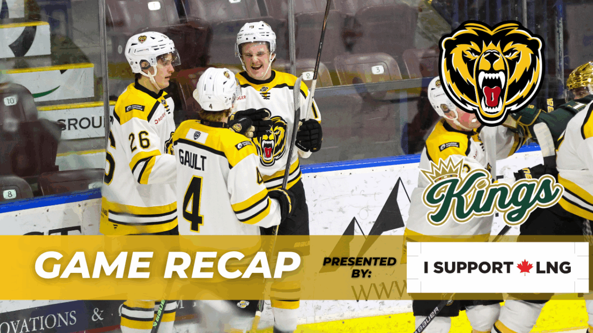 Victoria, BC ~ The Victoria Grizzlies were outscored four to one in the third period but held on to beat the Powell River Kings 8-5 on Saturday night at the Q Centre in Colwood.